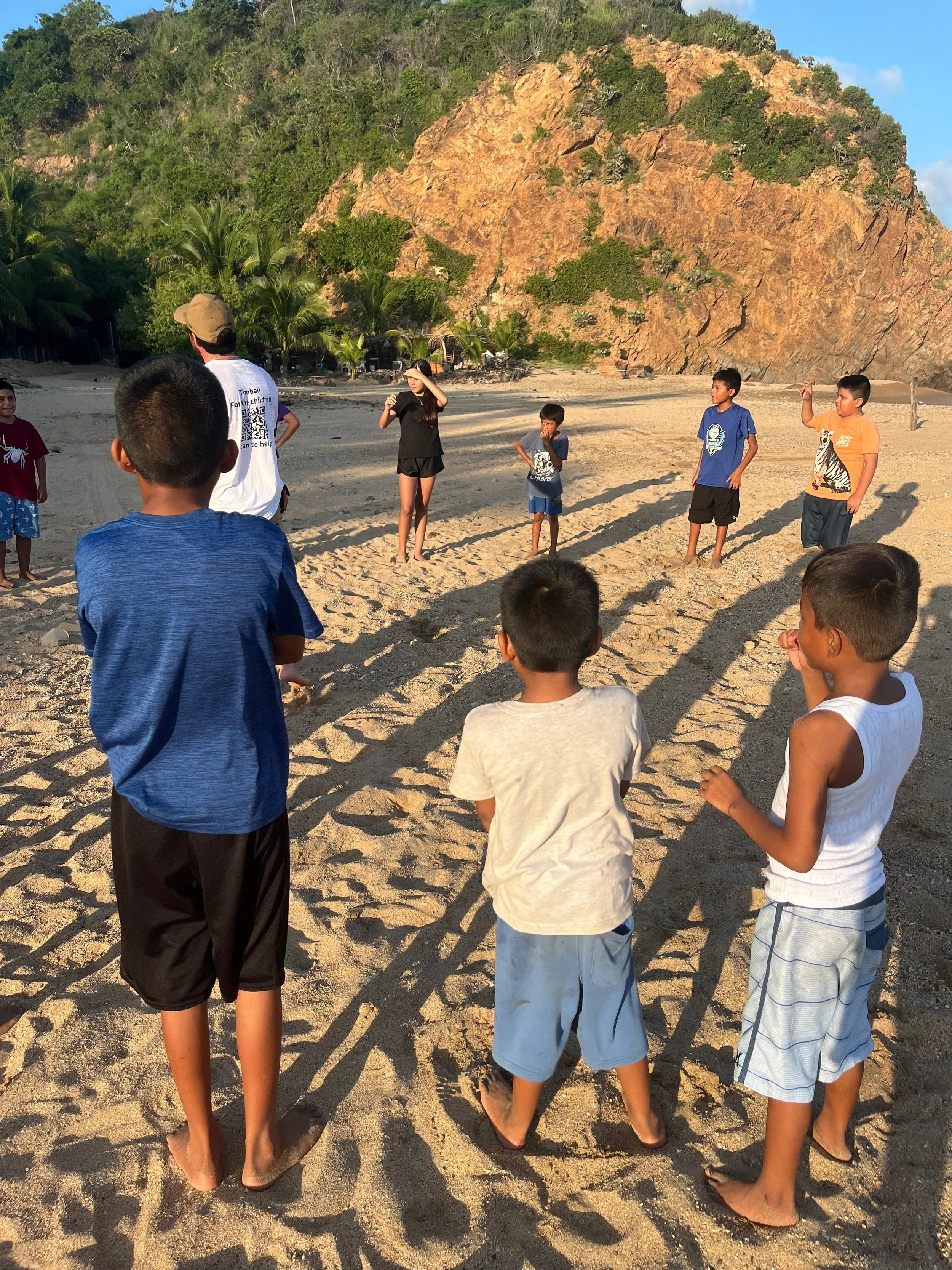 Our two dedicated specialized educators, Humberto and Rita, embarked on a long and adventurous journey to reach a remote village on the Michoacán coast. Their mission was clear: to meet the local community, to introduce the vision of Timbali, and to create a safe and inspiring space for children, a space where trust, creativity, and play could open the door to hope.