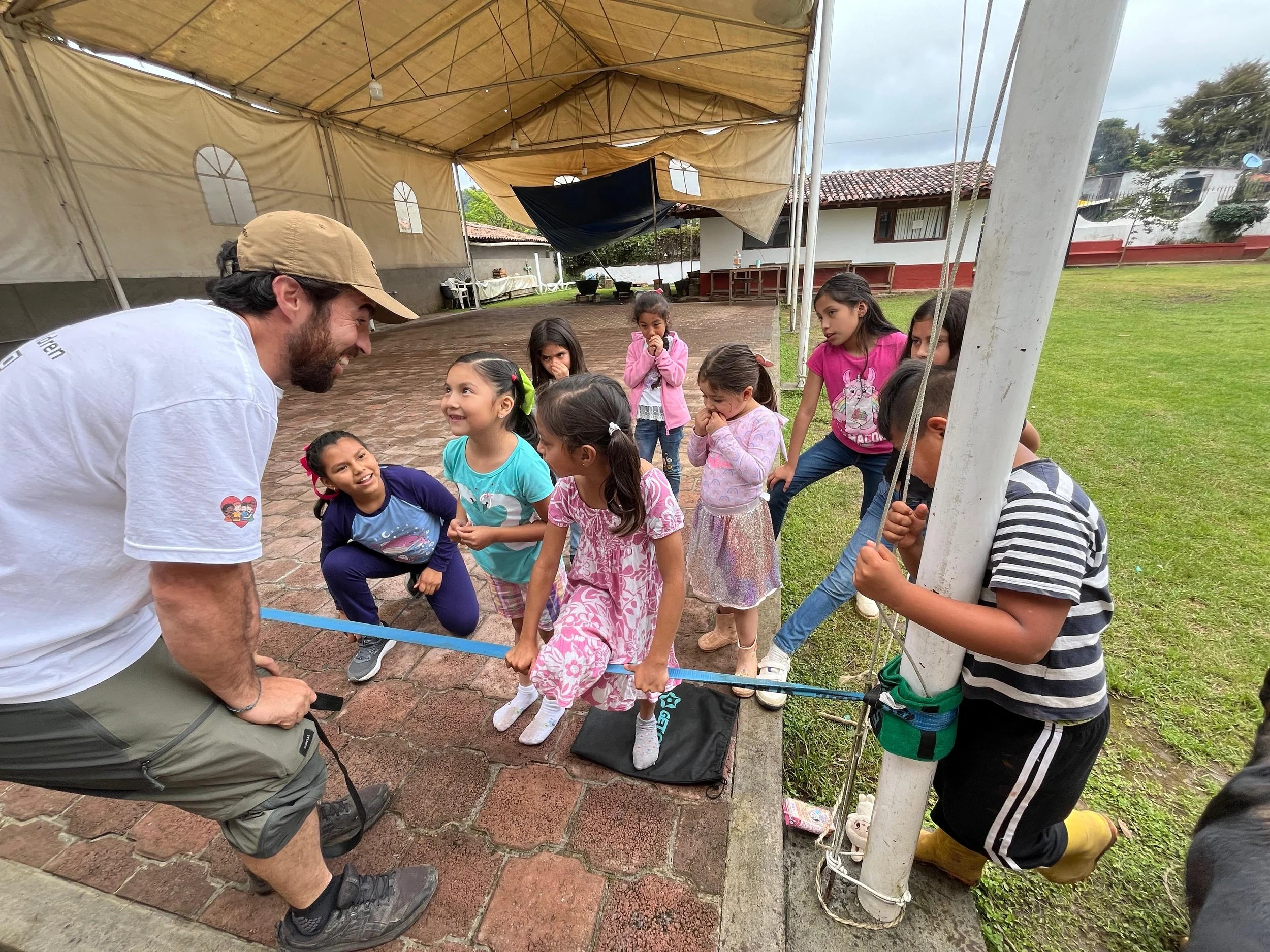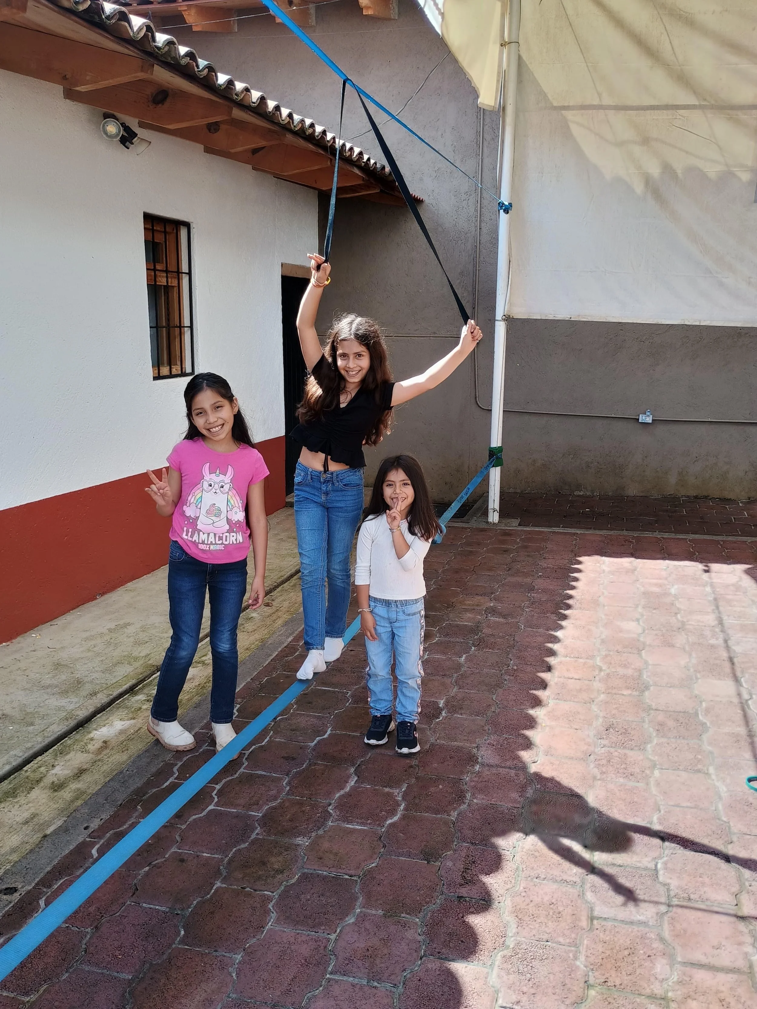 The day unfolded in a spirit of discovery and play. We began in the hacienda’s large garden, where the children connected through group activities. We then moved on to the bouldering area, visited rescued animals cared for by the camp, and tried slacklining in the orchard. To close, we gathered everyone for an inspirational talk, reflecting on the experience and encouraging the children to imagine a different future, one filled with creativity, trust, and new possibilities.